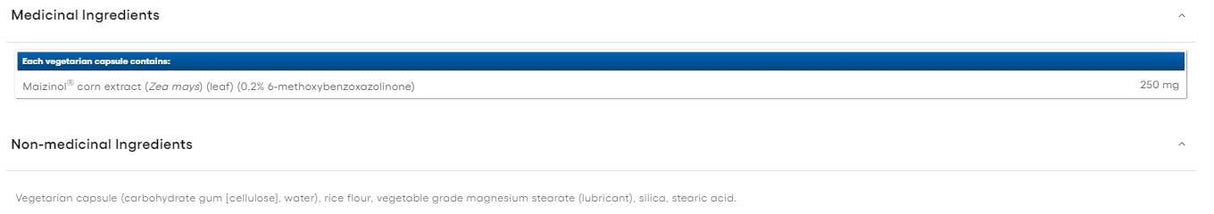 Použitím patentovaného procesu extrakcie a obohacovania je Maizinol® štandardizovaný na 0,2 % 6-metoxybenzoxazolinónu (6-MBOA). Jeho unikátne zloženie má pozoruhodný účinok na bunkové receptory, ktoré zvyšujú hladinu melatonínu a serotonínu. Tieto hormóny vedú k zlepšeniu kvality spánku, zníženiu produkcie kortizolu a vyrovnanosti nálady. Rovnako ako melatonín, Maizinol® pracuje s prirodzeným cyklom spánku a bdenia tela, aby predĺžil čas strávený v hlbokom spánku. Pomáha zlepšiť kvalitu nočného spánku bez toho, aby spôsoboval ospalosť počas dňa.