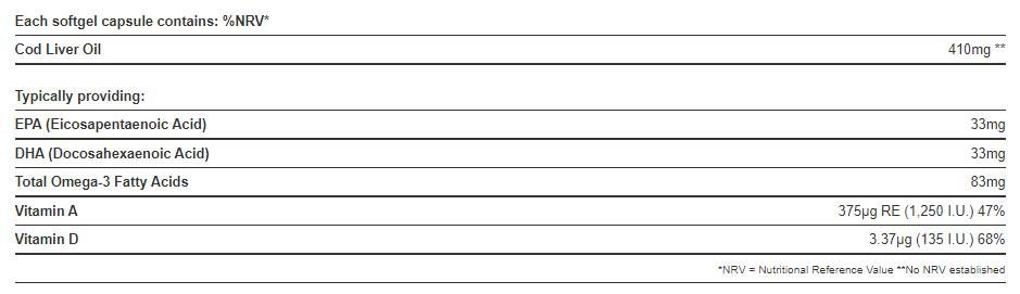Holland & Barrett Olej z tresčej pečene je vybraný z najkvalitnejších hlbokomorských, studenovodných rýb. Bohaté na podstatné Omega 3 mastné kyseliny , EPA a DHA, ktoré pomáhajú udržiavať normálne videnie, činnosť srdca a mozgu . Tieto kapsuly tiež obsahujú vitamíny A a D.