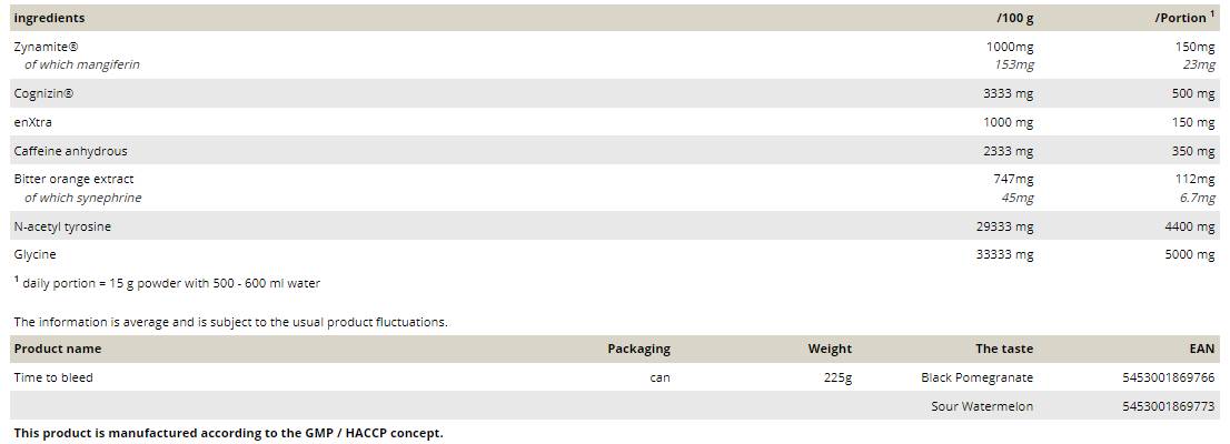 Čas na krvácanie s kognizínom a zynamitom 225 gramov