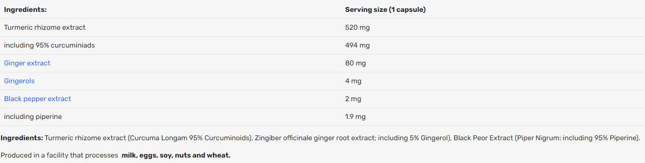 Kurkuma s koreňom zázvoru s 95% kurcuminoidov a 5% gingerolov - 60 kapsúl